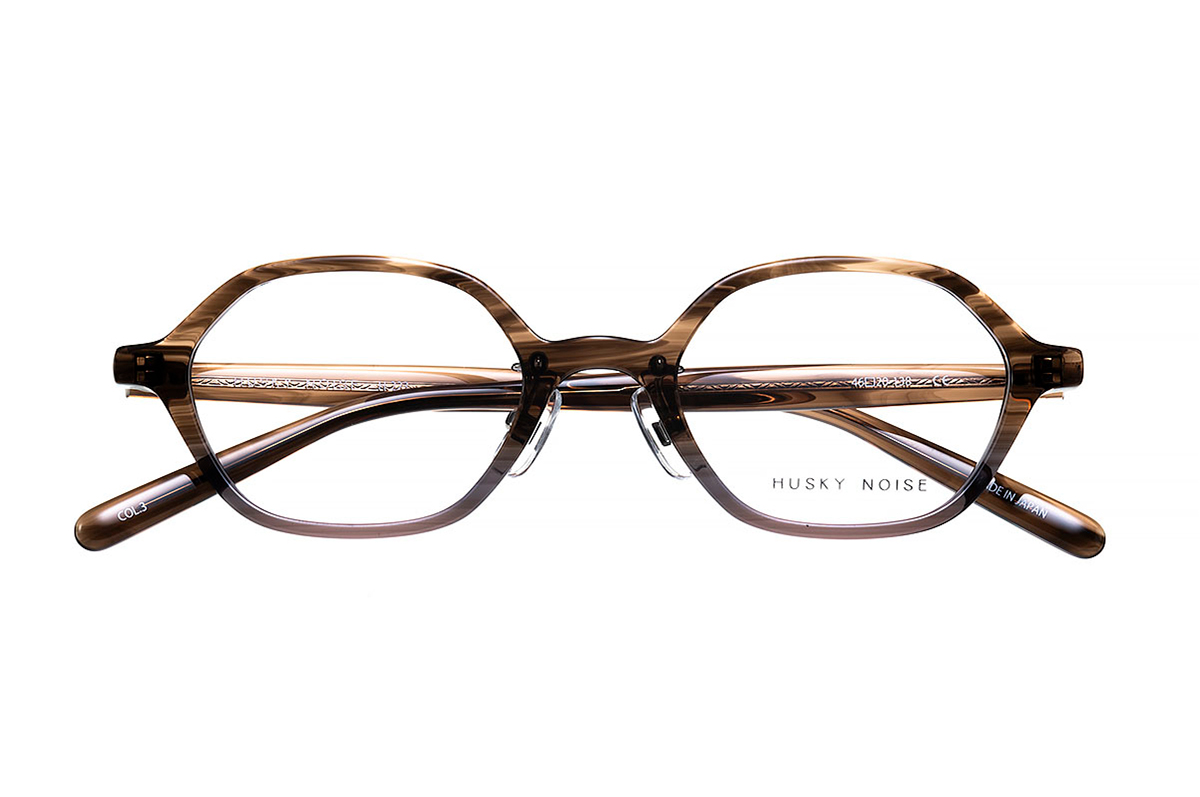 外側のチタンリムは多角形、レンズはオーバルなので不思議と馴染む、冒険したくない方ほど実はハマるデザインです。豊かな色調のアセテートは、厳選されたダブルハーフ生地を採用しコーディネートに華を添えました。さり気なく、でもしっかりと「あなたらしさ」を引き立てる一本です。プラ単体より変形が少なく、チタン単体よりボリュームが出ます。更に小さめシェイプがレンズ厚をカバーするため、強度数の方にもおすすめです。