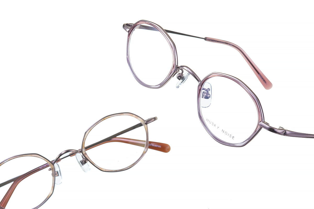 外側のチタンリムは多角形、レンズはオーバルなので不思議と馴染む、冒険したくない方ほど実はハマるデザインです。豊かな色調のアセテートは、厳選されたダブルハーフ生地を採用しコーディネートに華を添えました。さり気なく、でもしっかりと「あなたらしさ」を引き立てる一本です。プラ単体より変形が少なく、チタン単体よりボリュームが出ます。更に小さめシェイプがレンズ厚をカバーするため、強度数の方にもおすすめです。